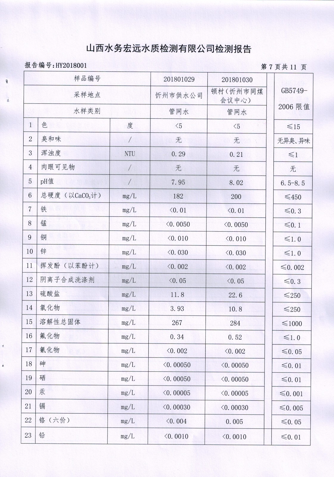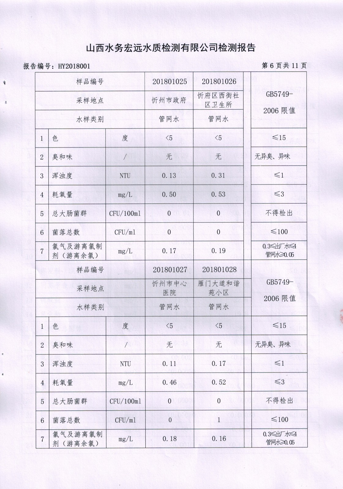 忻州城區公共供水水源水、出廠水、管網水、管網末梢水2018年1月份水質信息公示