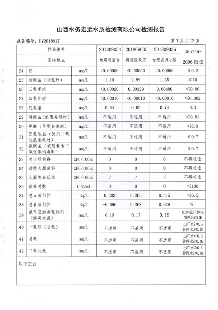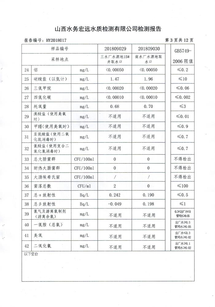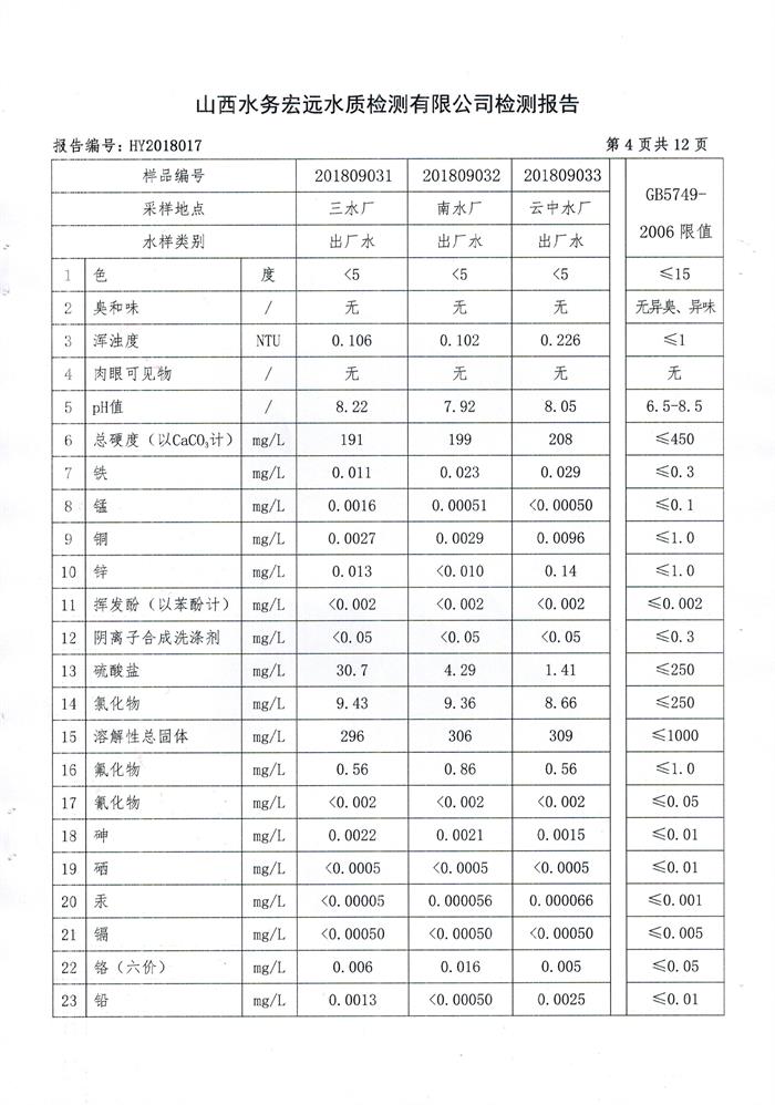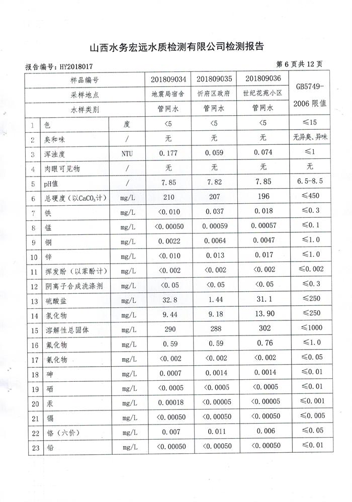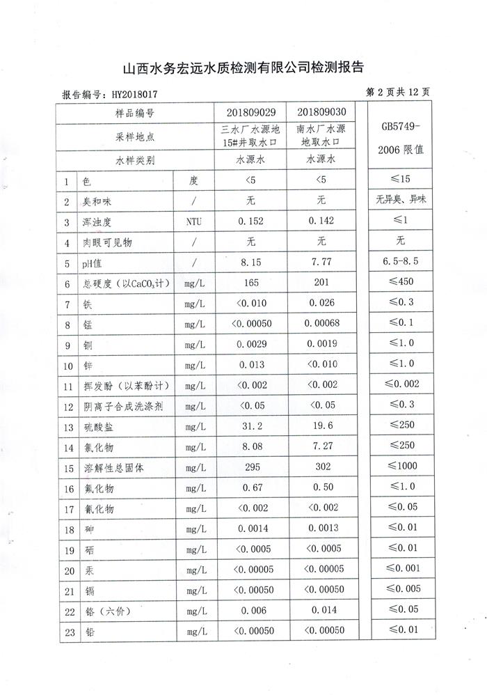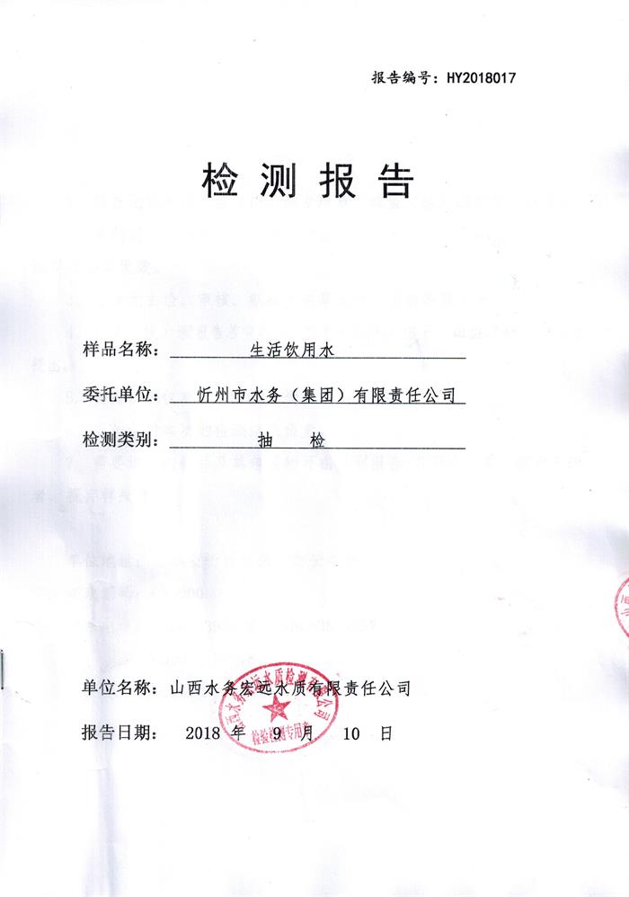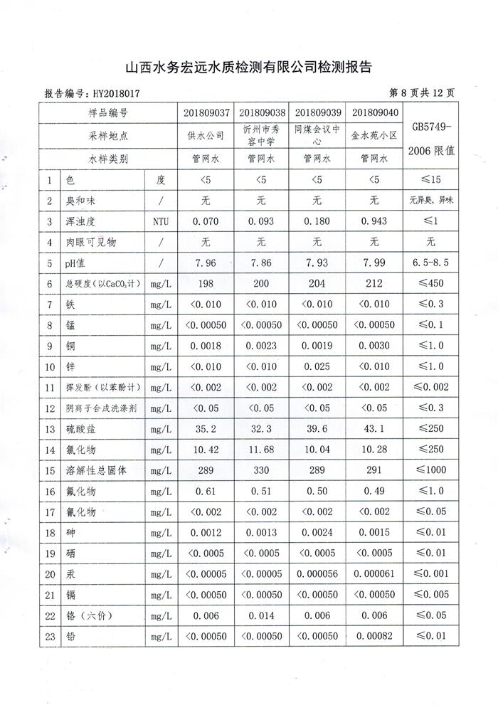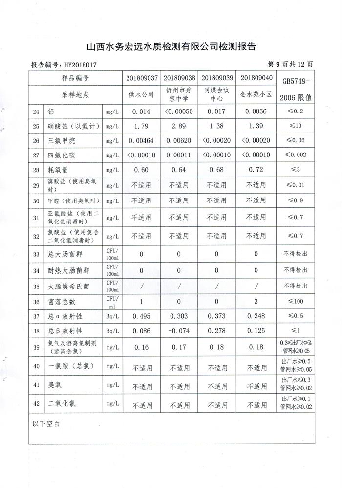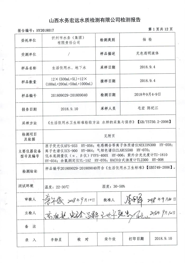 忻州城區公共供水水源水、出廠水、管網水、管網末梢水2018年9月份水質信息公示