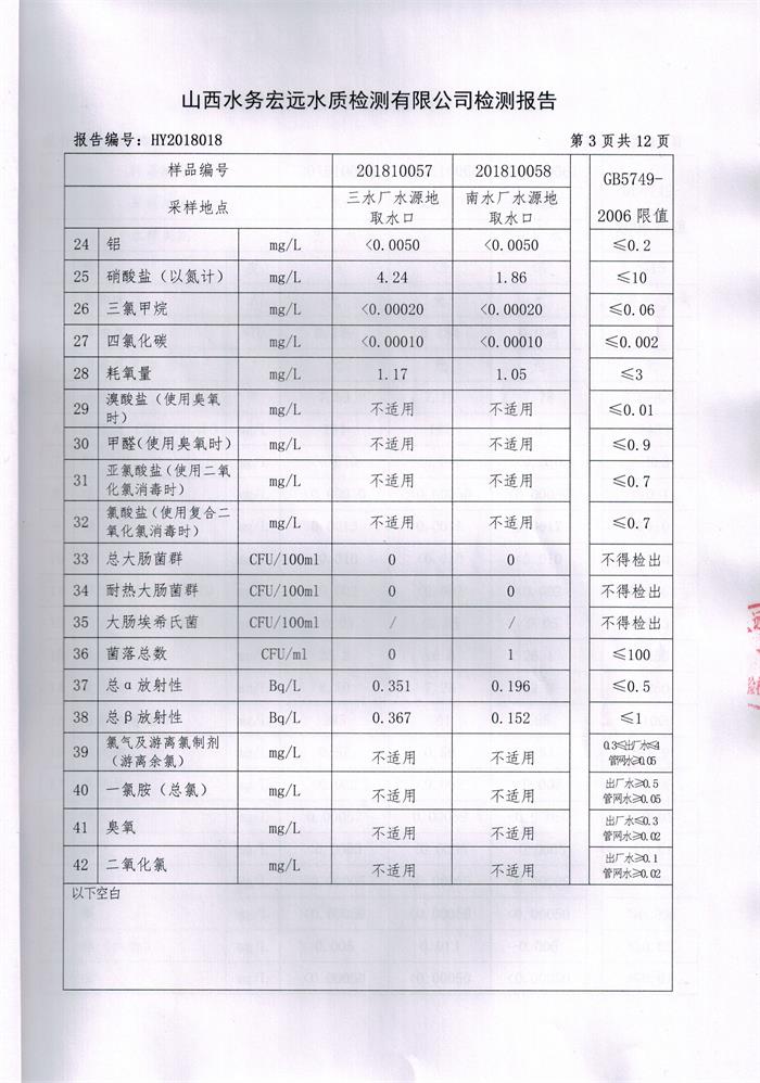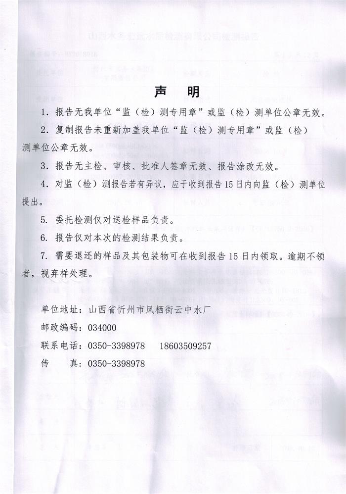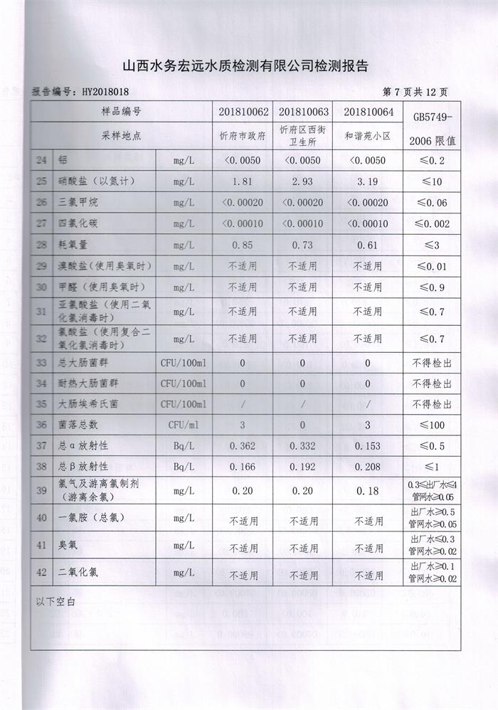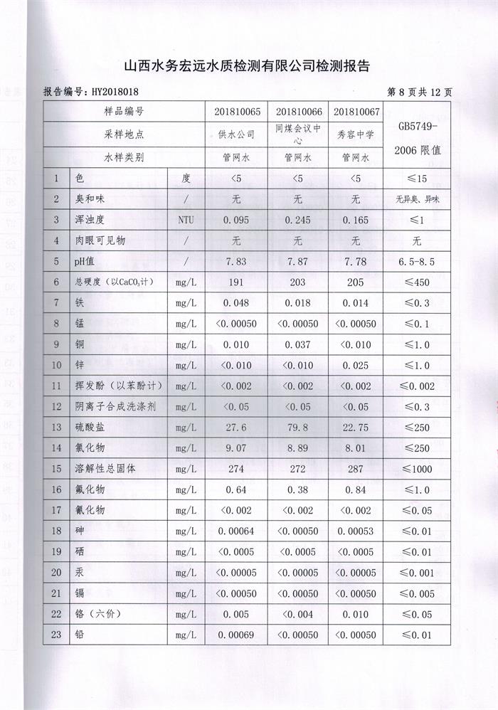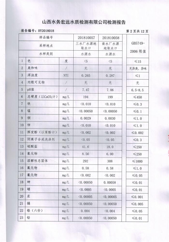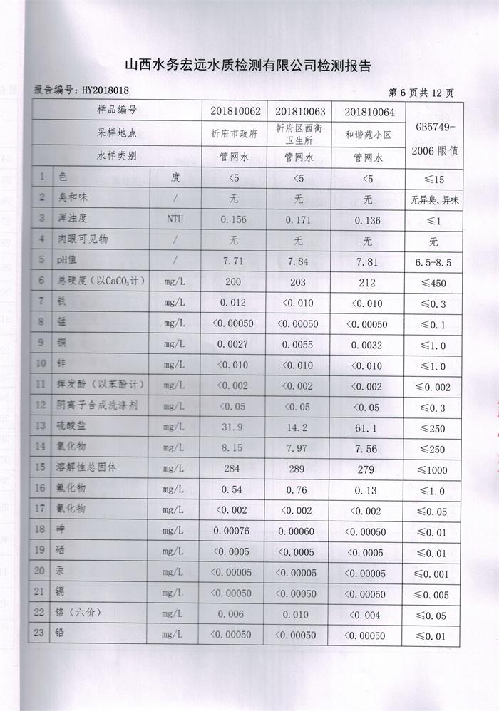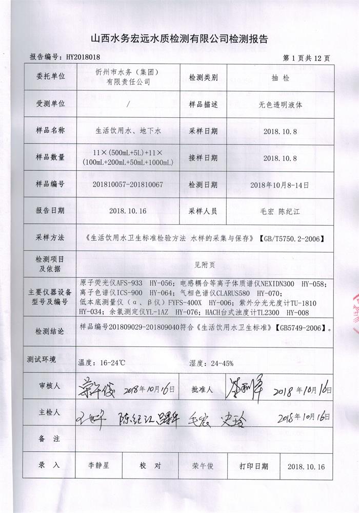 忻州城區公共供水水源水、出廠水、管網水、管網末梢水2018年10月份水質信息公示