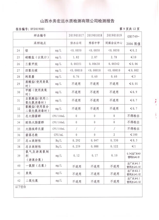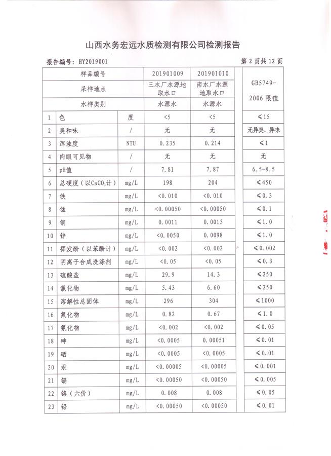 忻州城區公共供水水源水、出廠水、管網水、管網末梢水2019年1月份水質信息公示