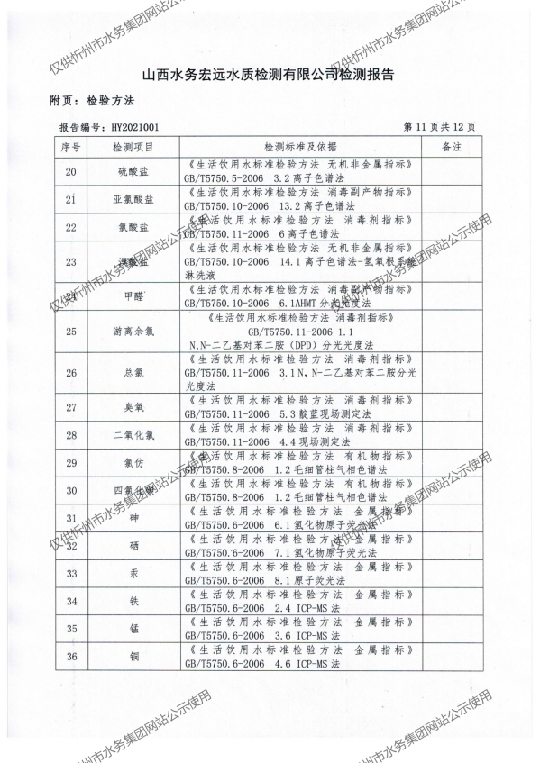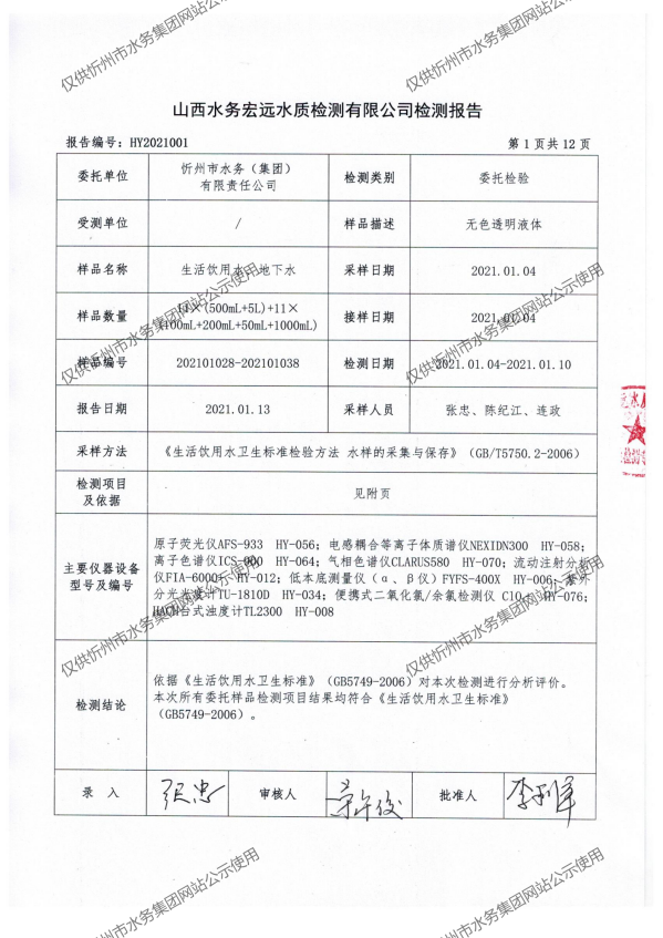 忻州城區公共供水水源水、出廠水、管網水、管網末梢水2021年1月份水質信息公示